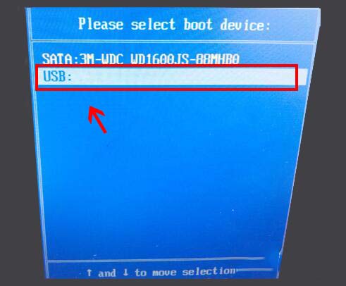 3、在快捷启动窗口中选择带有“USB”字样的,就是u盘启动。