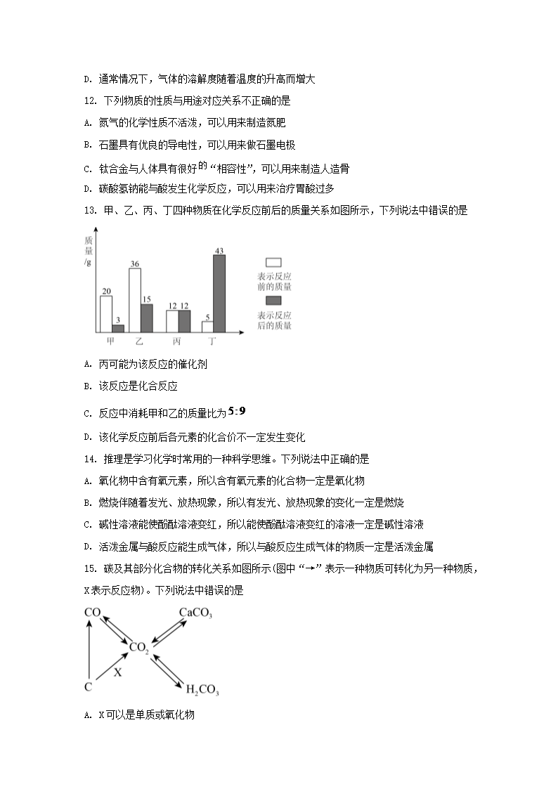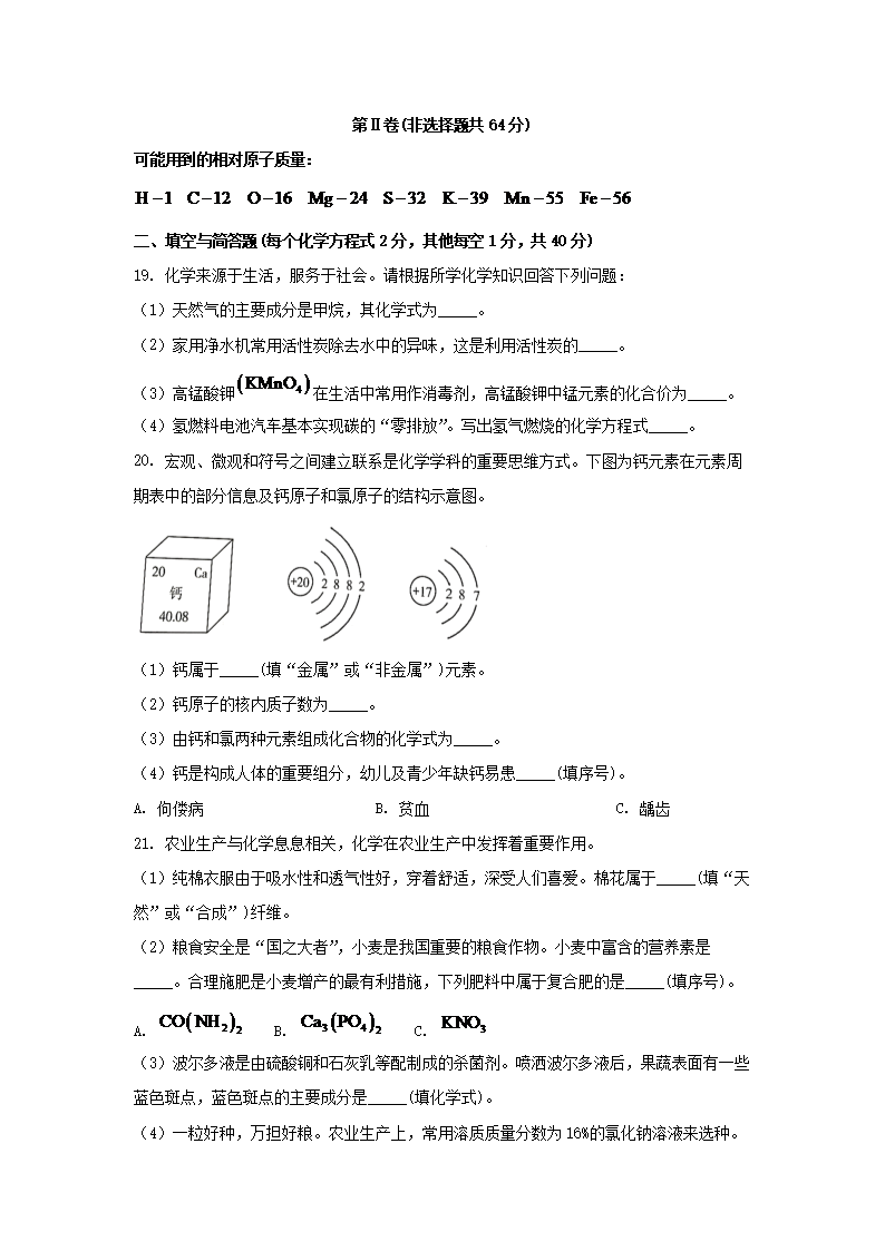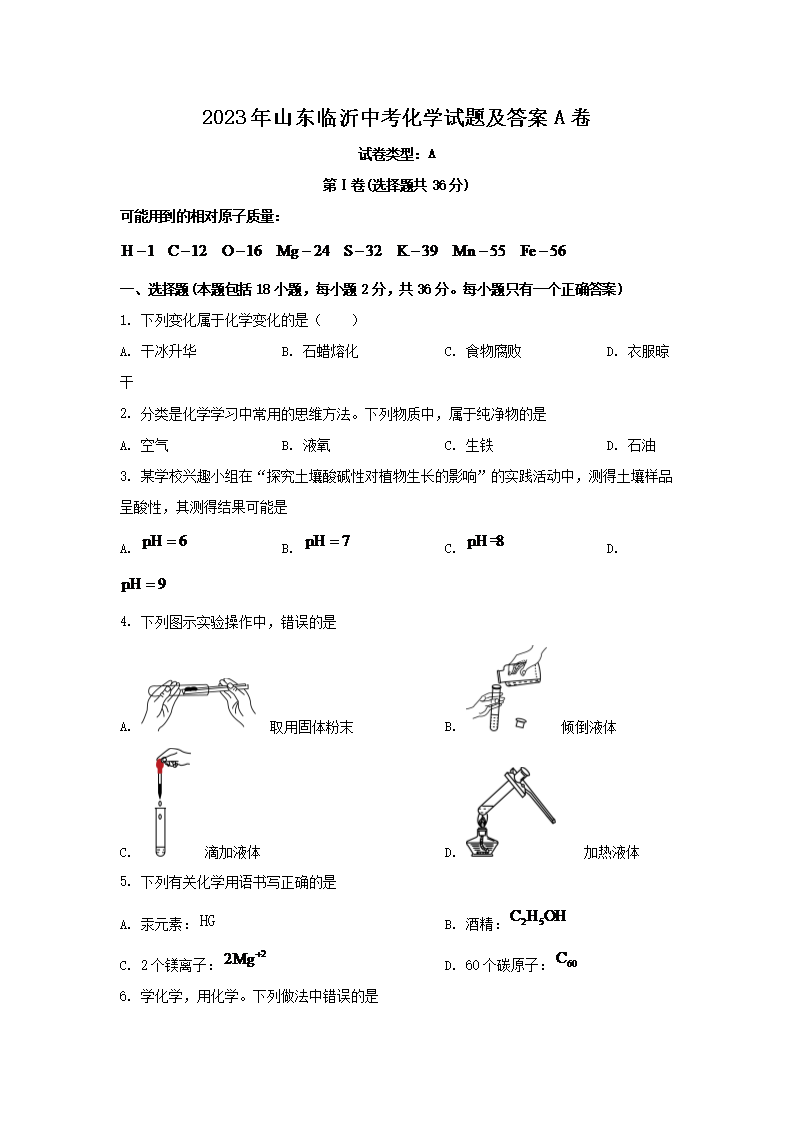 2023年山东临沂中考化学试题及答案A卷(Word版)07-20