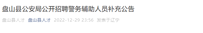原文标题:盘山县公安局公开招聘警务辅助人员补充公告