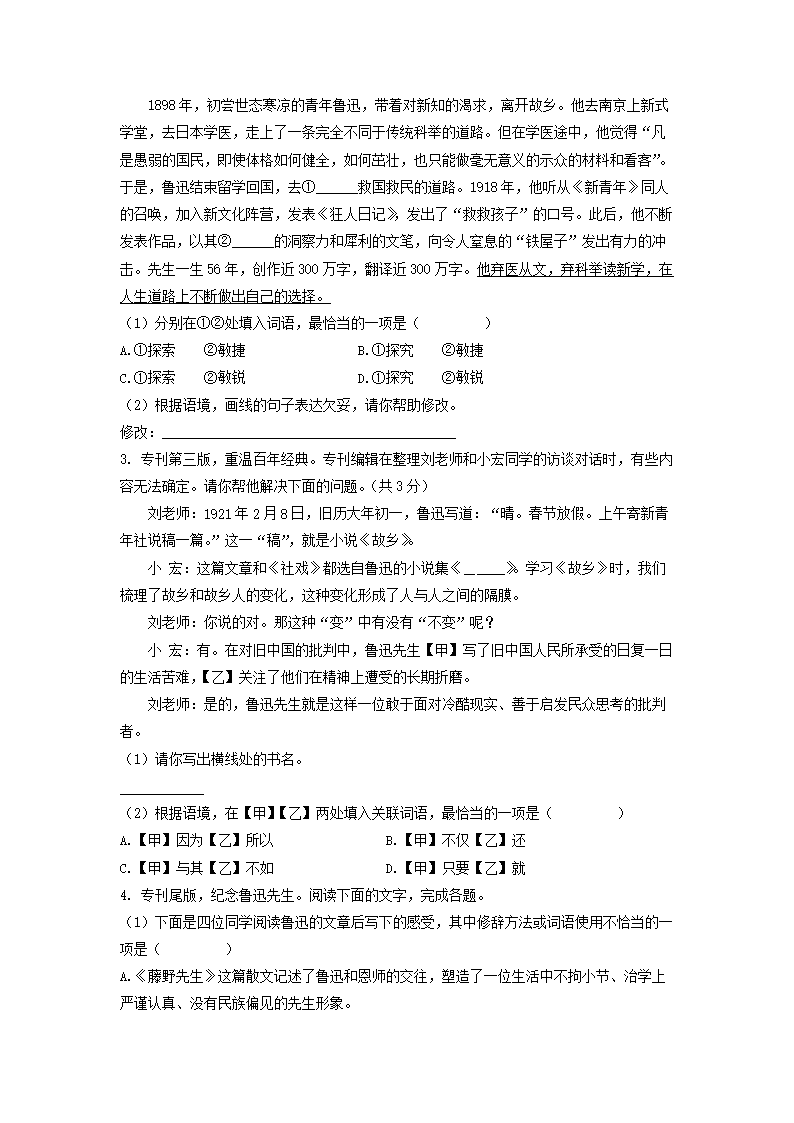 【文档预览】 文档大全网整理发布2021-2022学年北京朝阳区初三第一学期语文期末试卷及答案(Word版),前五页预览如下: