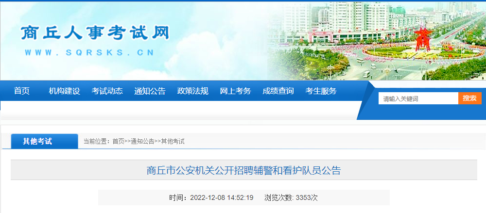 2022年河南商丘市公安机关招聘辅警和看护队员公告(报名时间12月12日-14日)12-10