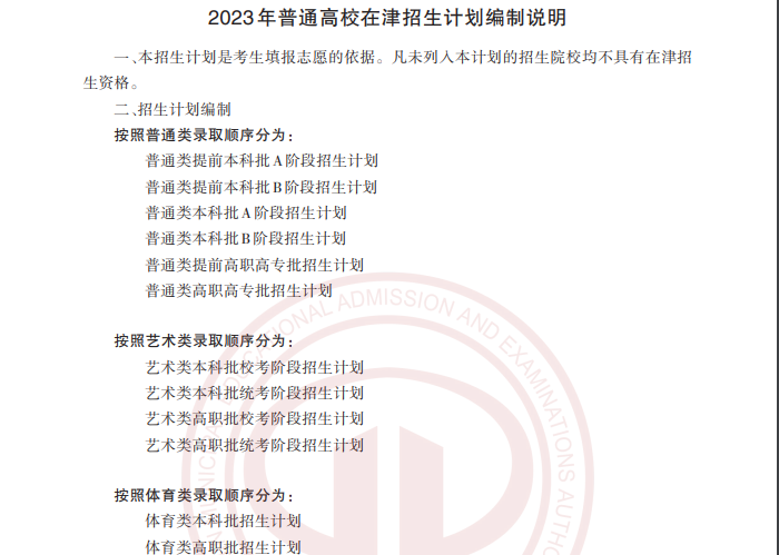 2023年普通高等学校在天津招生计划编制说明06-26