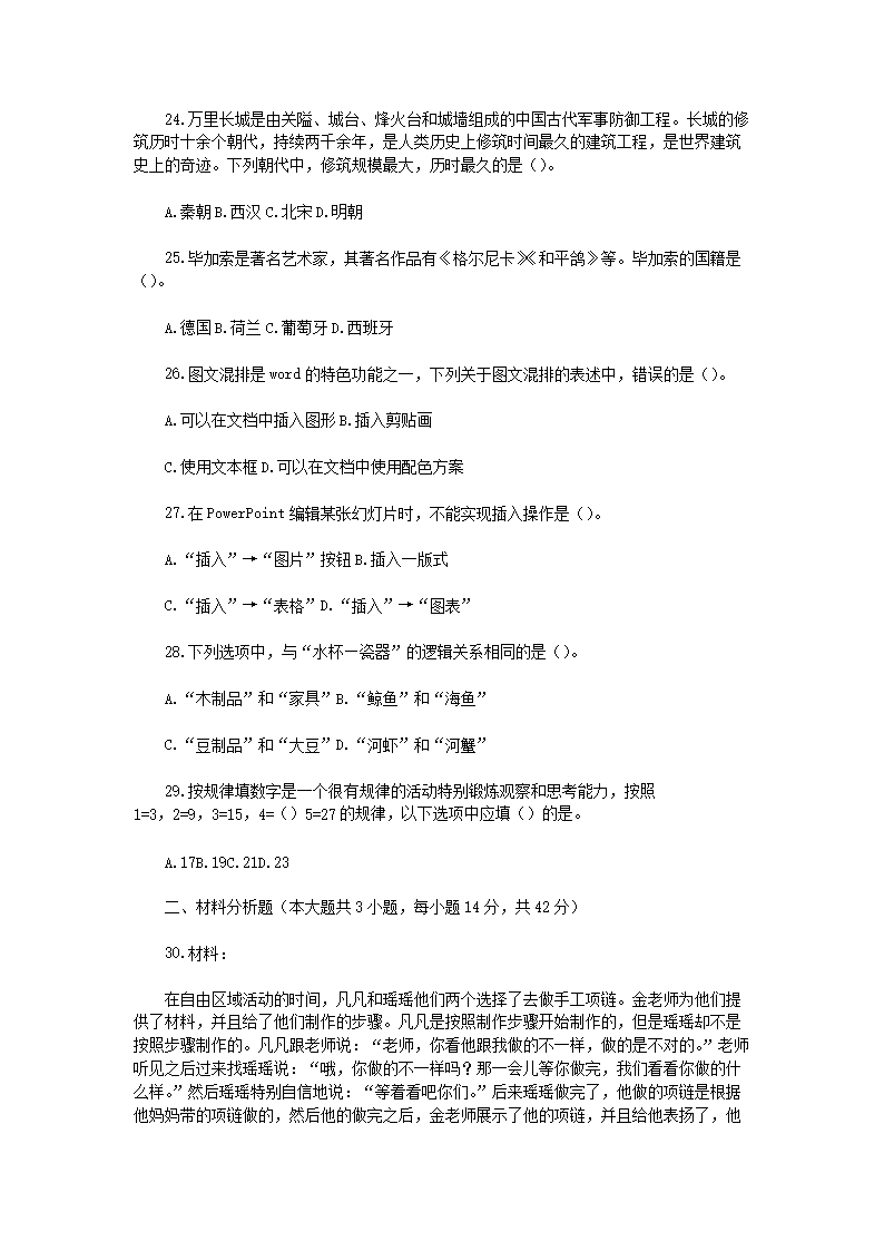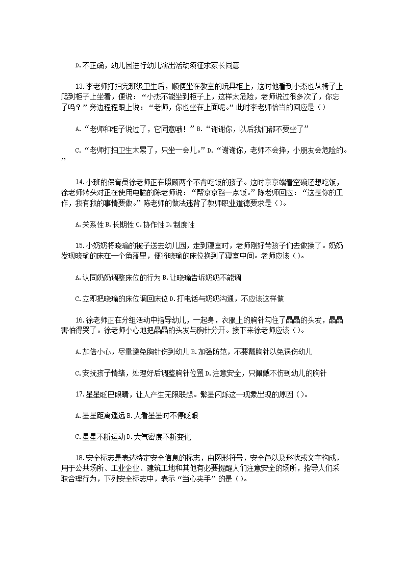 【文档预览】 文档大全网整理发布2022下半年湖南教师资格证幼儿综合素质真题及答案(Word版),前五页预览如下: