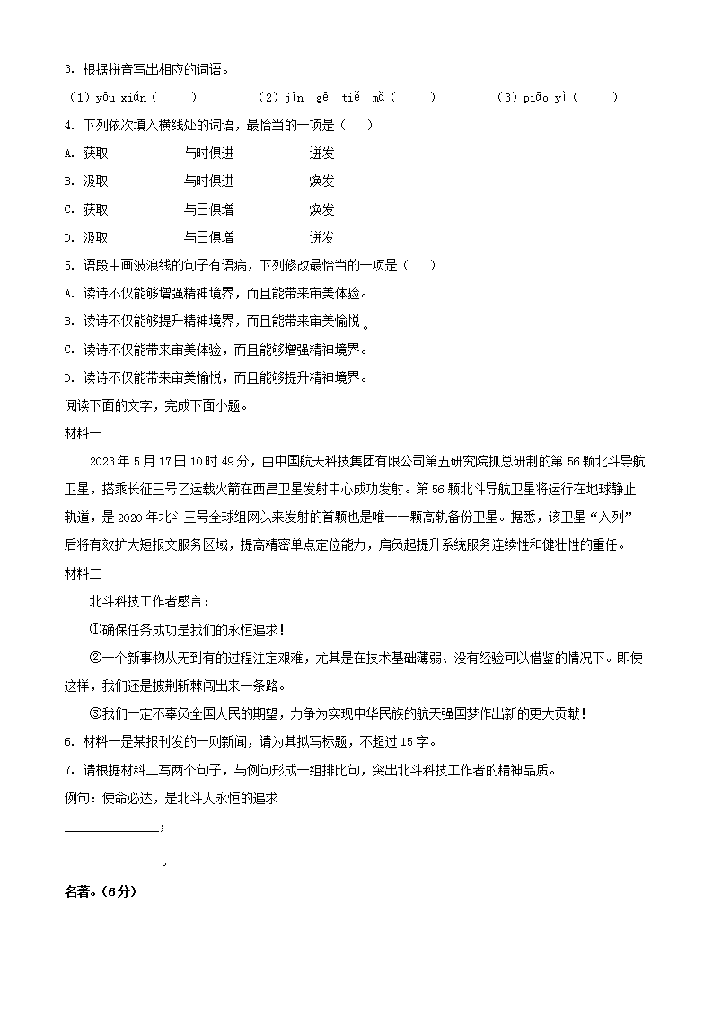 2023年广东阳江中考语文真题及答案(Word版)07-01