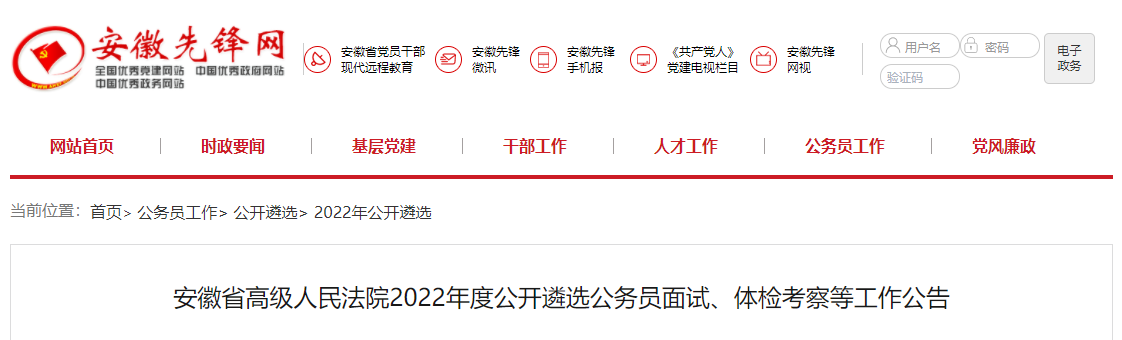原文标题:安徽省高级人民法院2022年度公开遴选公务员面试、体检考察等工作公告