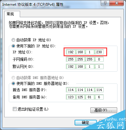 五、将自动获取 IP 地址修改为使用下面的IP地址,IP地址和默认网关要根据你们内网的分配来确定,如果不能确定是多少,可以查看下同事电脑的ip地址,一般默认网关和IP地址的前三位是相同的,最后一位一般为1。。。注意,如果修改了IP,点击确定以后提示你有IP冲突,那么就再换一个IP试试。