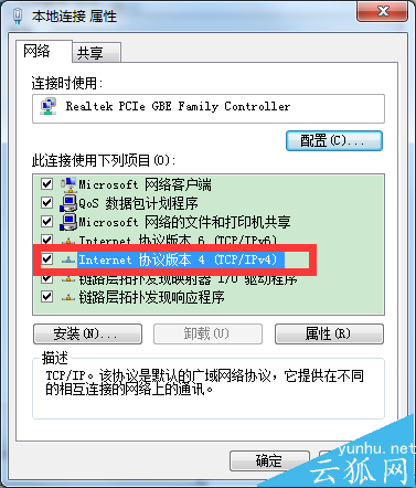 四、在属性界面中双击下面的Internet 协议版本4(TCP/IP4)
