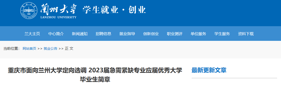 原标题:重庆市面向兰州大学定向选调 2023届急需紧缺专业应届优秀大学毕业生简章
