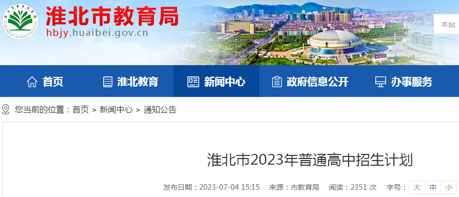 安徽淮北2023年普通高中招生计划表公布07-07
