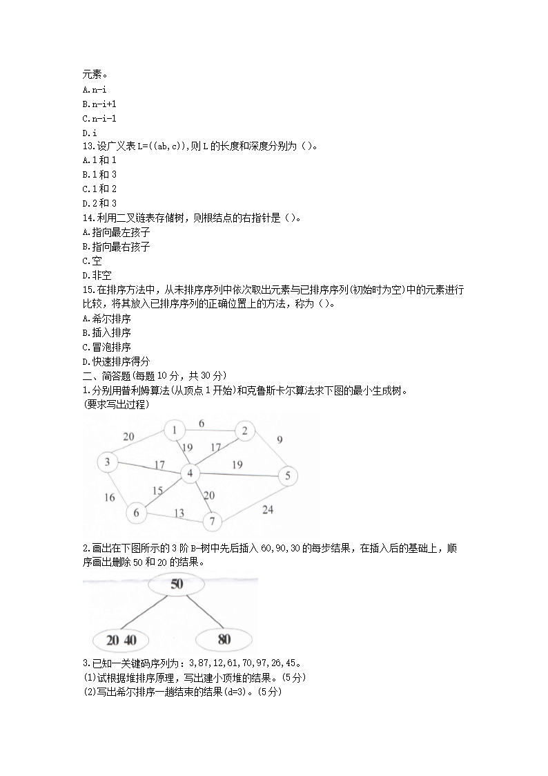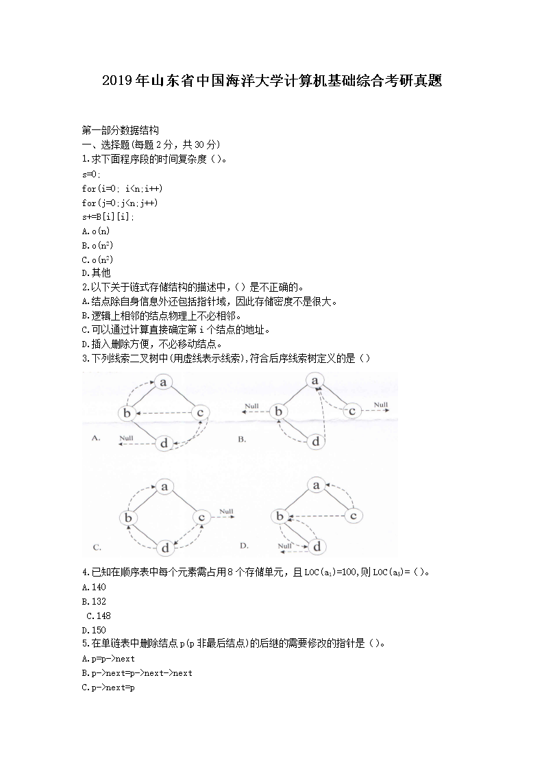 2019年山东省中国海洋大学计算机基础综合考研真题(Word版)05-30