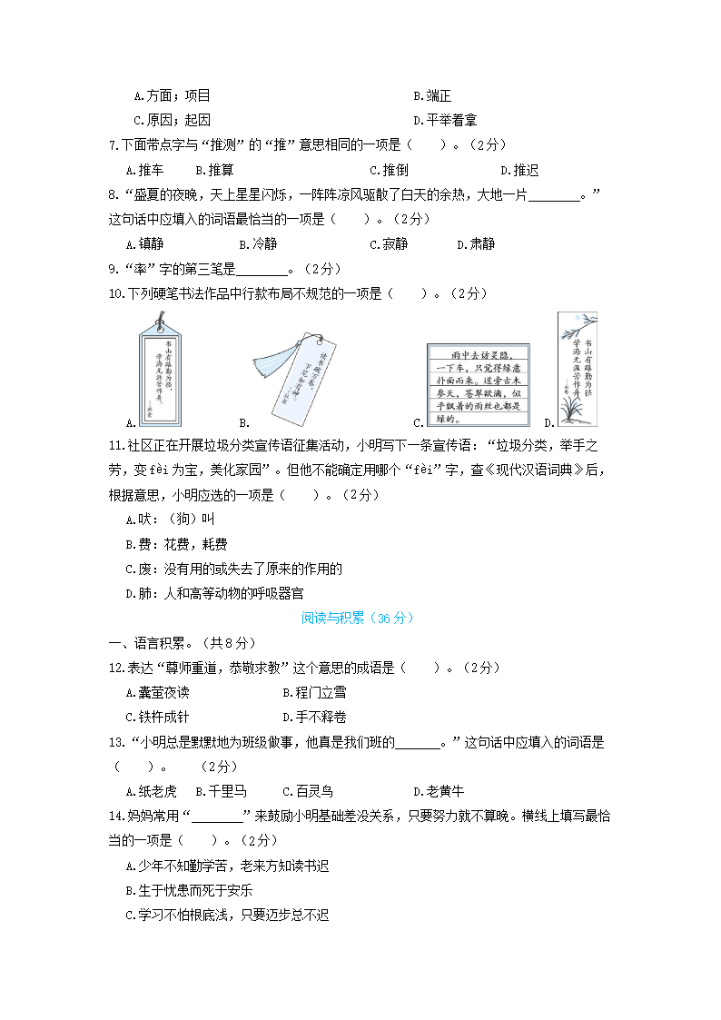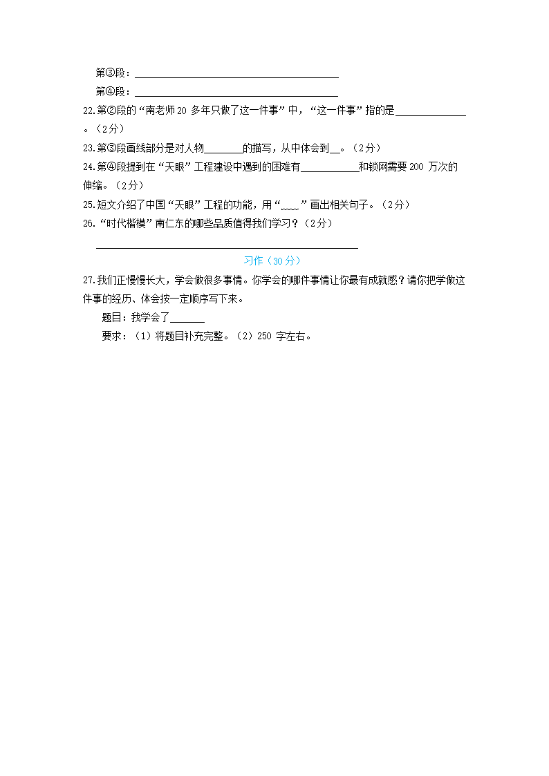2022年北京市朝阳区四年级下学期期末语文真题及答案(Word版)06-17