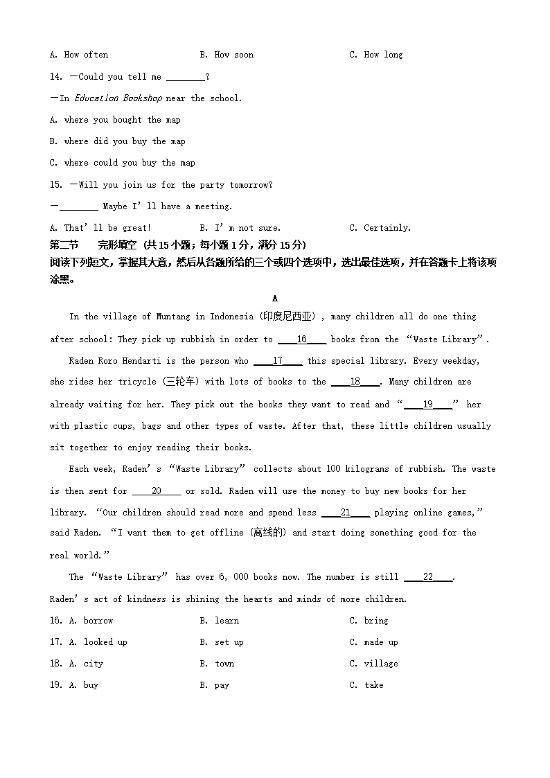 2023年四川乐山中考英语真题及答案(Word版)06-30