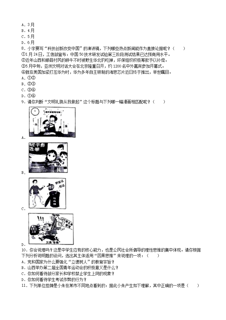 2019年山西晋城中考政治真题及答案(Word版)05-30