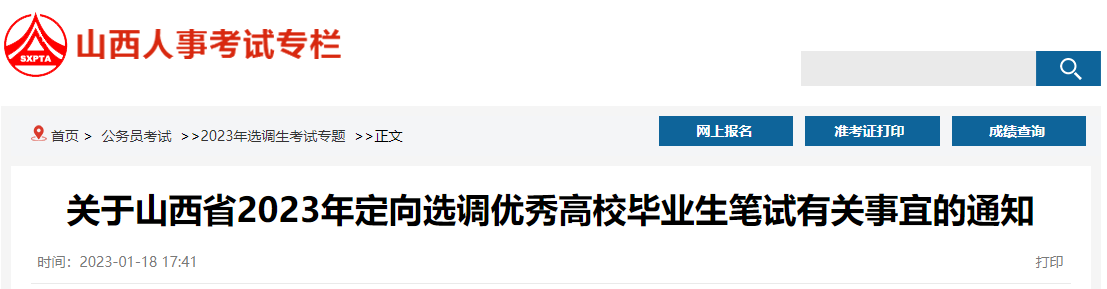 山西省2023年定向选调优秀高校毕业生笔试定于2023年2月11日在太原举行,现将有关事宜通知如下: