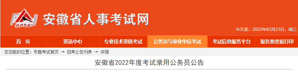 2022年安徽省考试录用公务员公告.doc正在阅读: