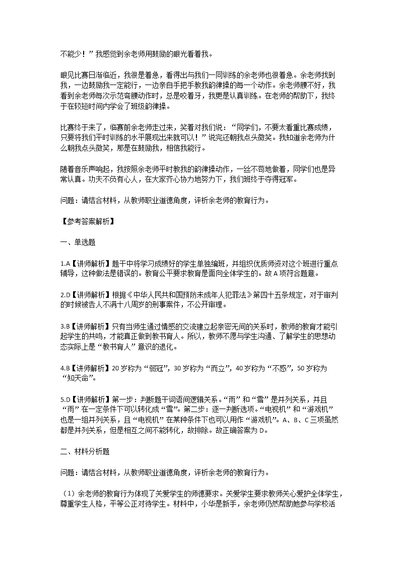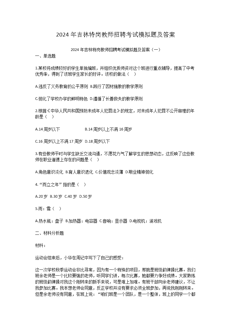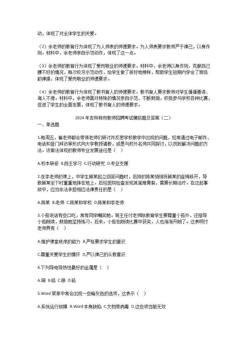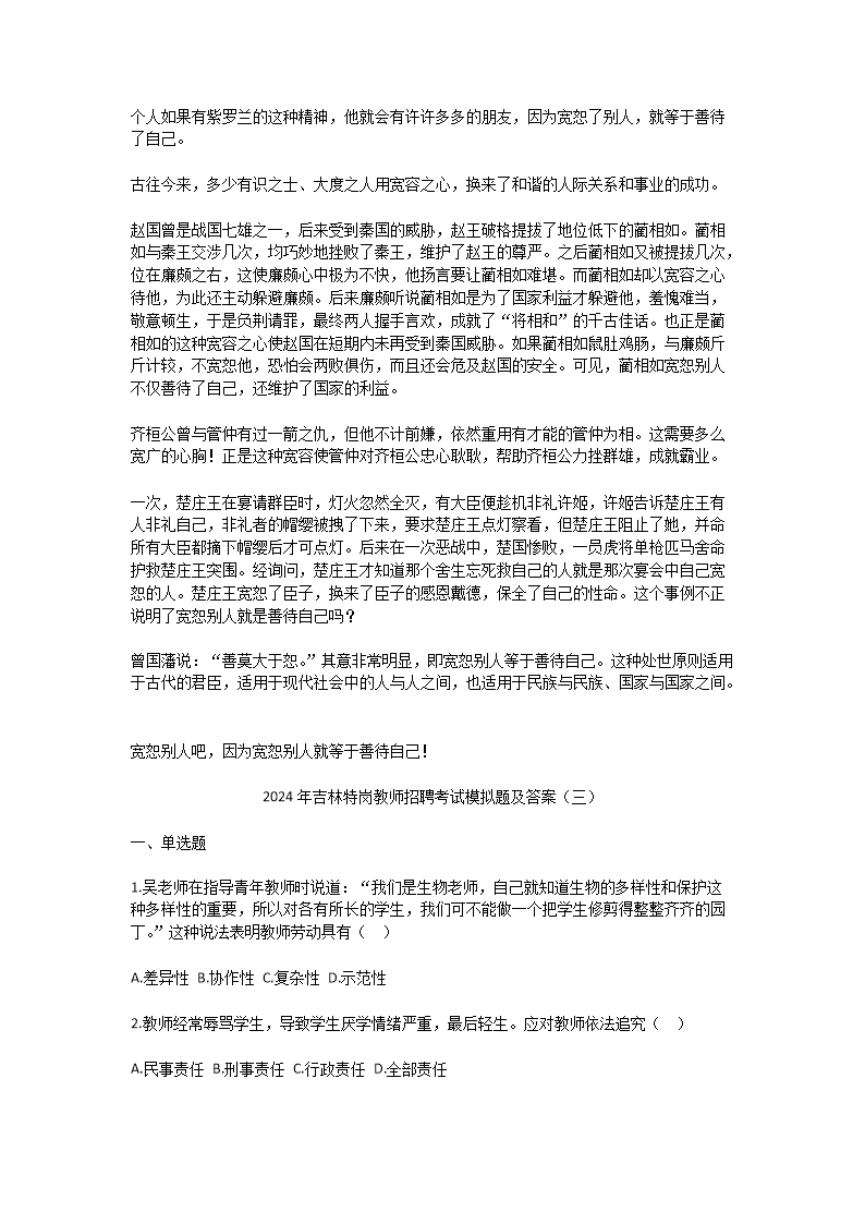 2024年吉林特岗教师招聘考试模拟题及答案(Word版)10-20
