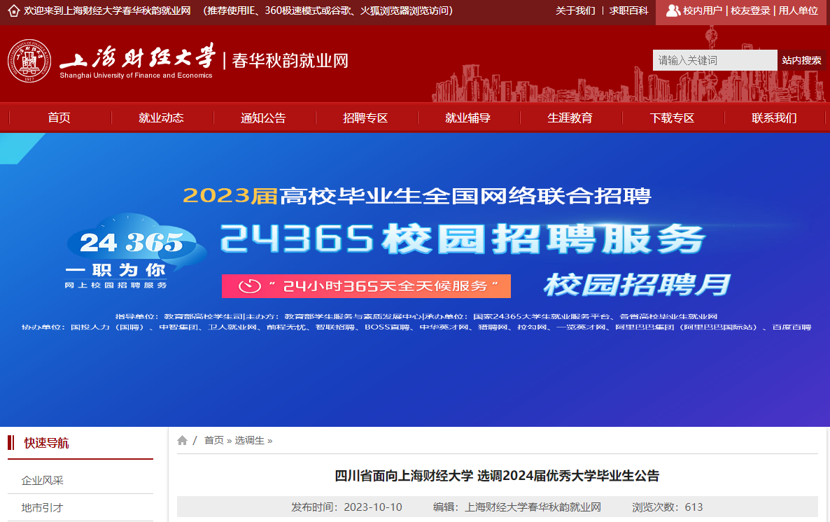 四川省面向上海财经大学选调2024届优秀大学毕业生公告10-13