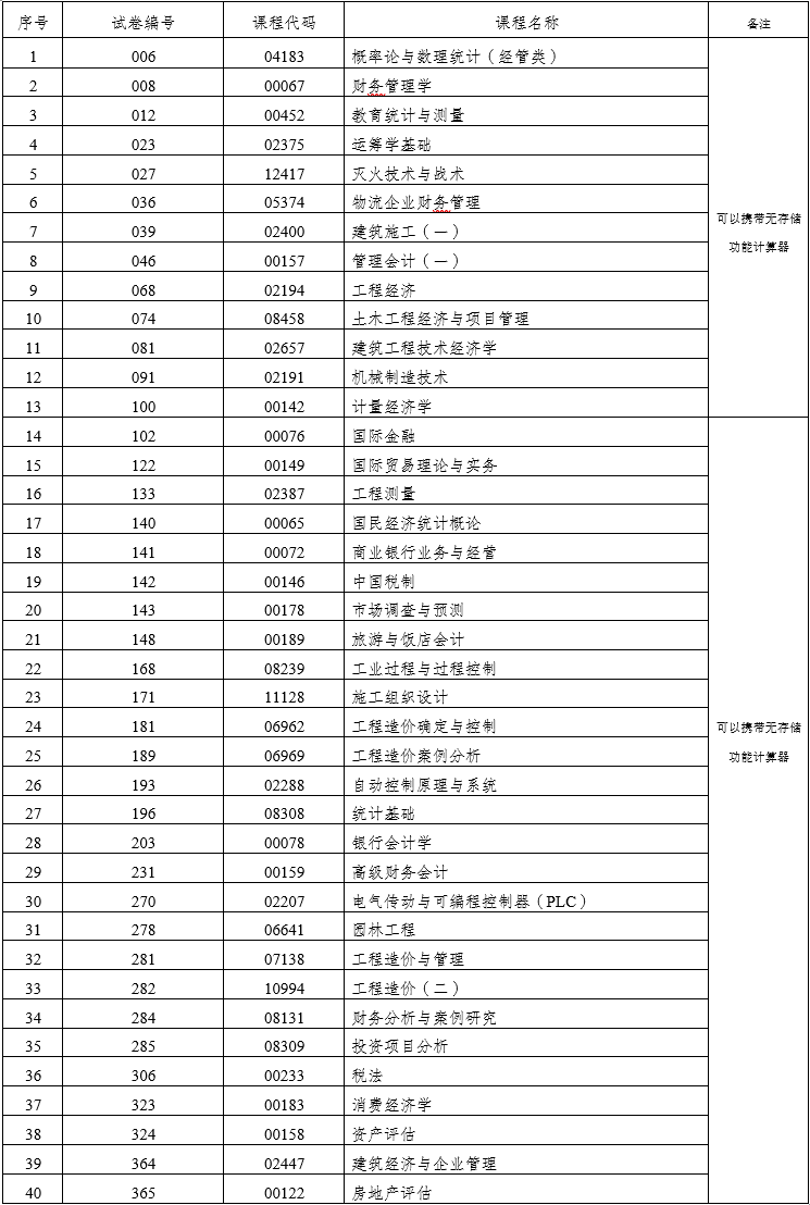 二、以下科目可以携带无存储功能的计算器