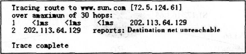 15、 在一台主机上用浏览器无法访问到域名为www.Still.com的网站,并且在这台主机上执行tracert命令时有如下信息