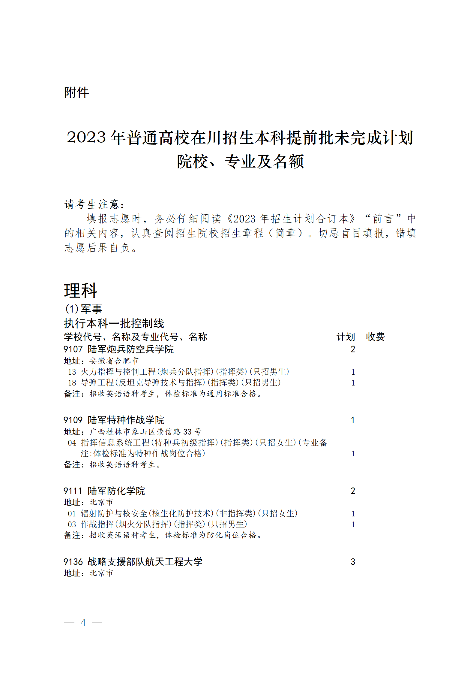 2023年四川高考本科提前批未完成计划院校征集志愿的通知07-14