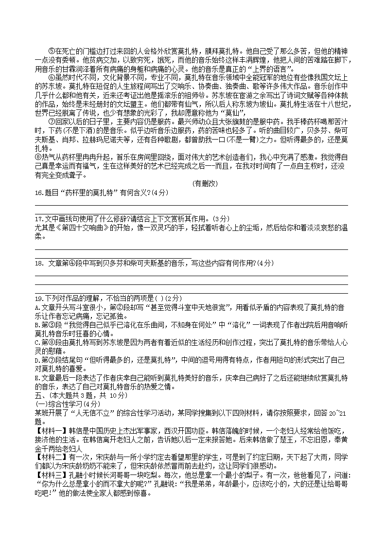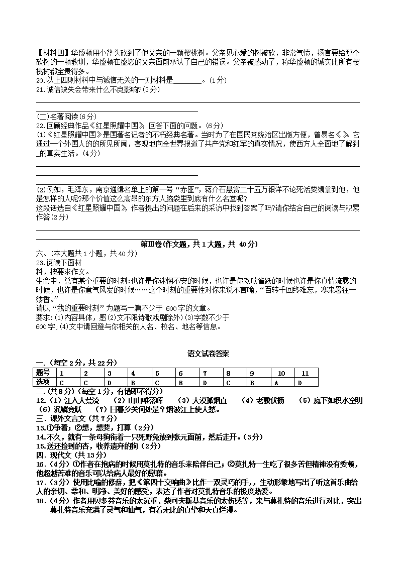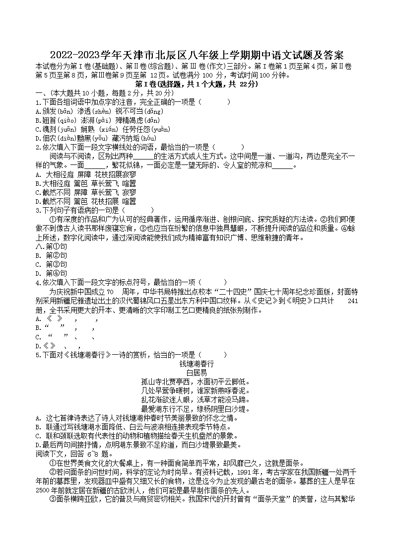 2022-2023学年天津市北辰区八年级上学期期中语文试题及答案(Word版)10-21