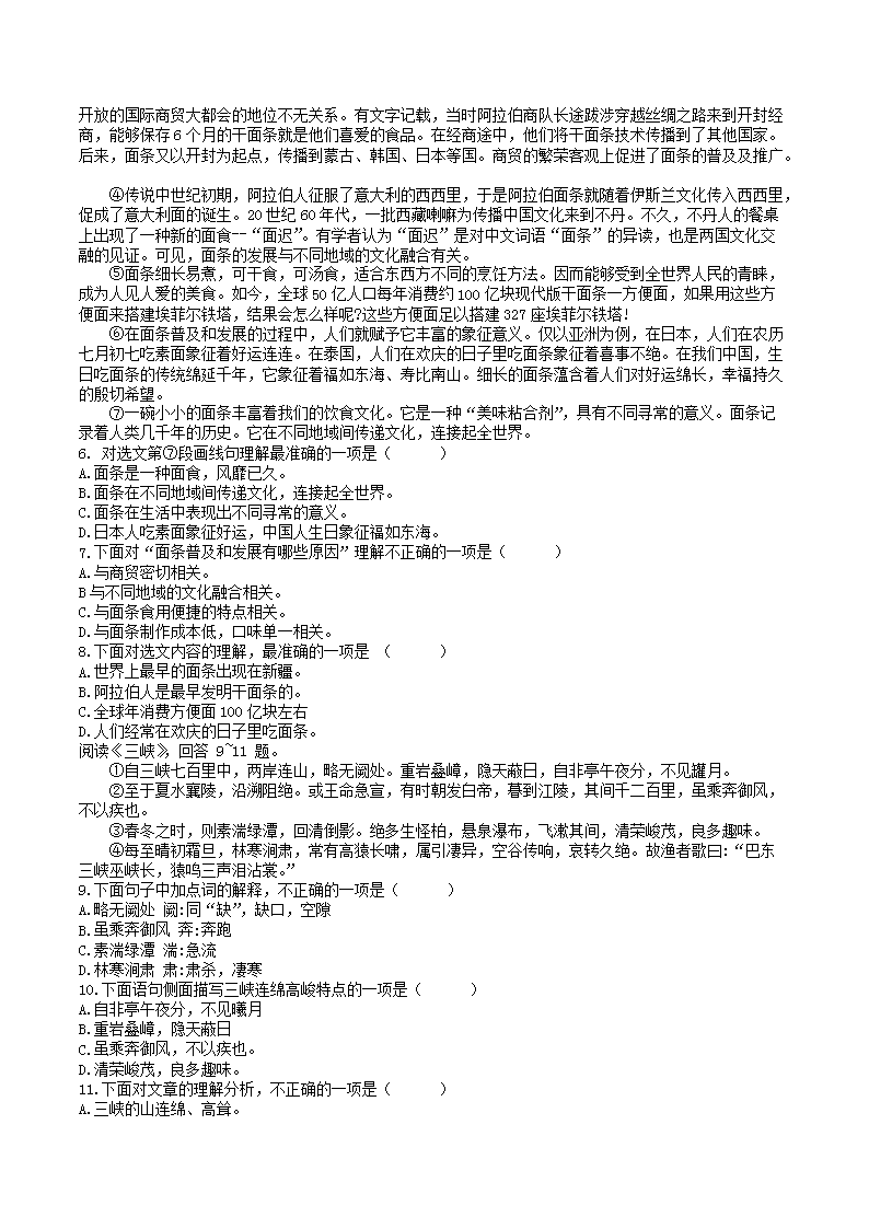 【文档预览】 文档大全网整理发布2022-2023学年天津市北辰区八年级上学期期中语文试题及答案(Word版),前五页预览如下: