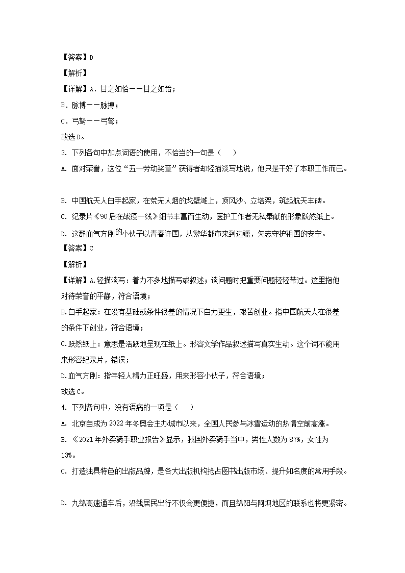 2022年四川省绵阳市中考语文真题及答案(Word版)05-31