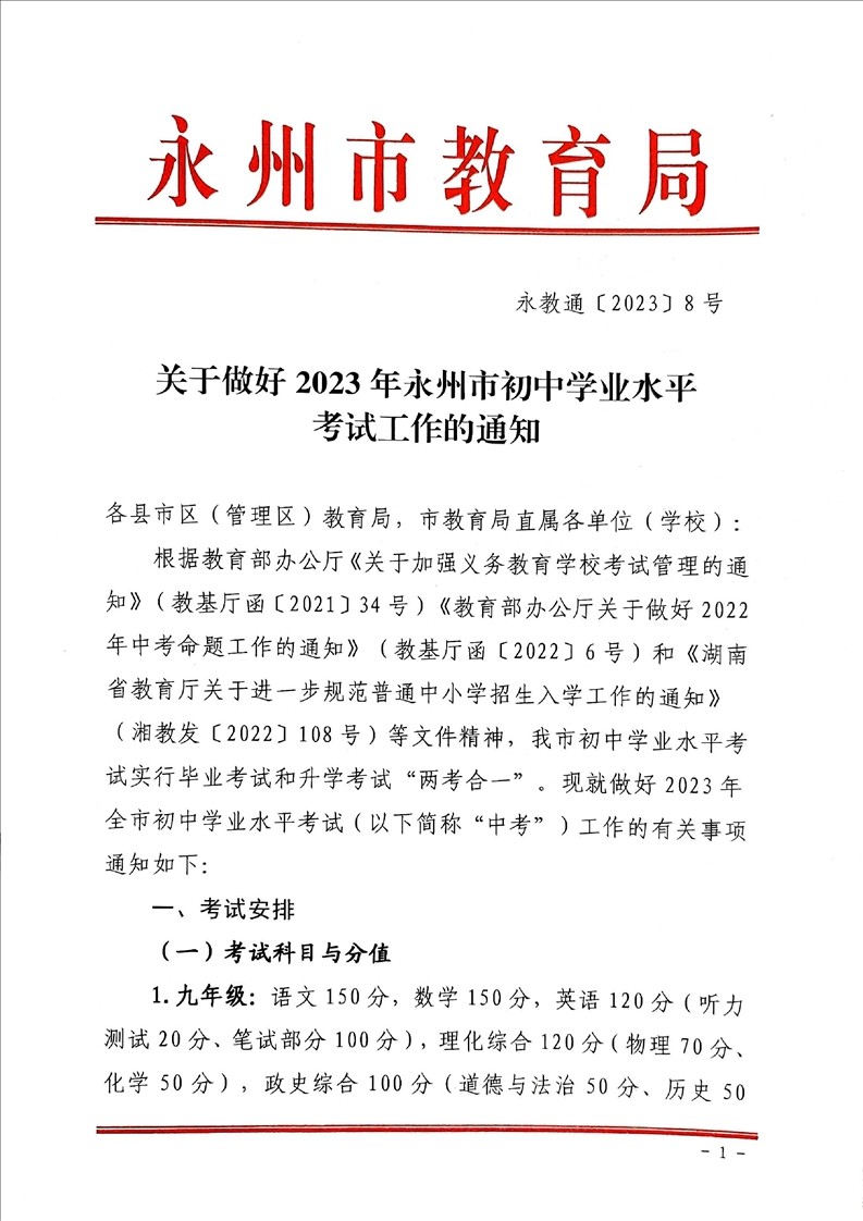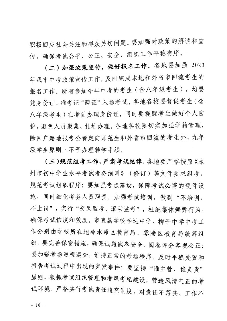 原文标题:关于做好2023年永州市初中学业水平考试工作的通知