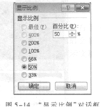 在“幻灯片浏览”视图下,幻灯片通常以66%的比例显示,所以称为幻灯片缩略图。根据需要可以调节显示比例,如希望一屏显示更多幻灯片缩略图,则可以缩小显示比例。要确定幻灯片缩略图显示比例,在“幻灯片浏览”视图下单击“视图”选项卡“显示比例”组的“显示比例”命令,出现“显示比例”对话框,如图5—14所示。在“显示比例”对话框中选择合适的显示比例(如33%或50%等)。也可以自己定义显示比例,方法是在“百分比”栏中直接输入比例或单击上下箭头选取合适的比例。