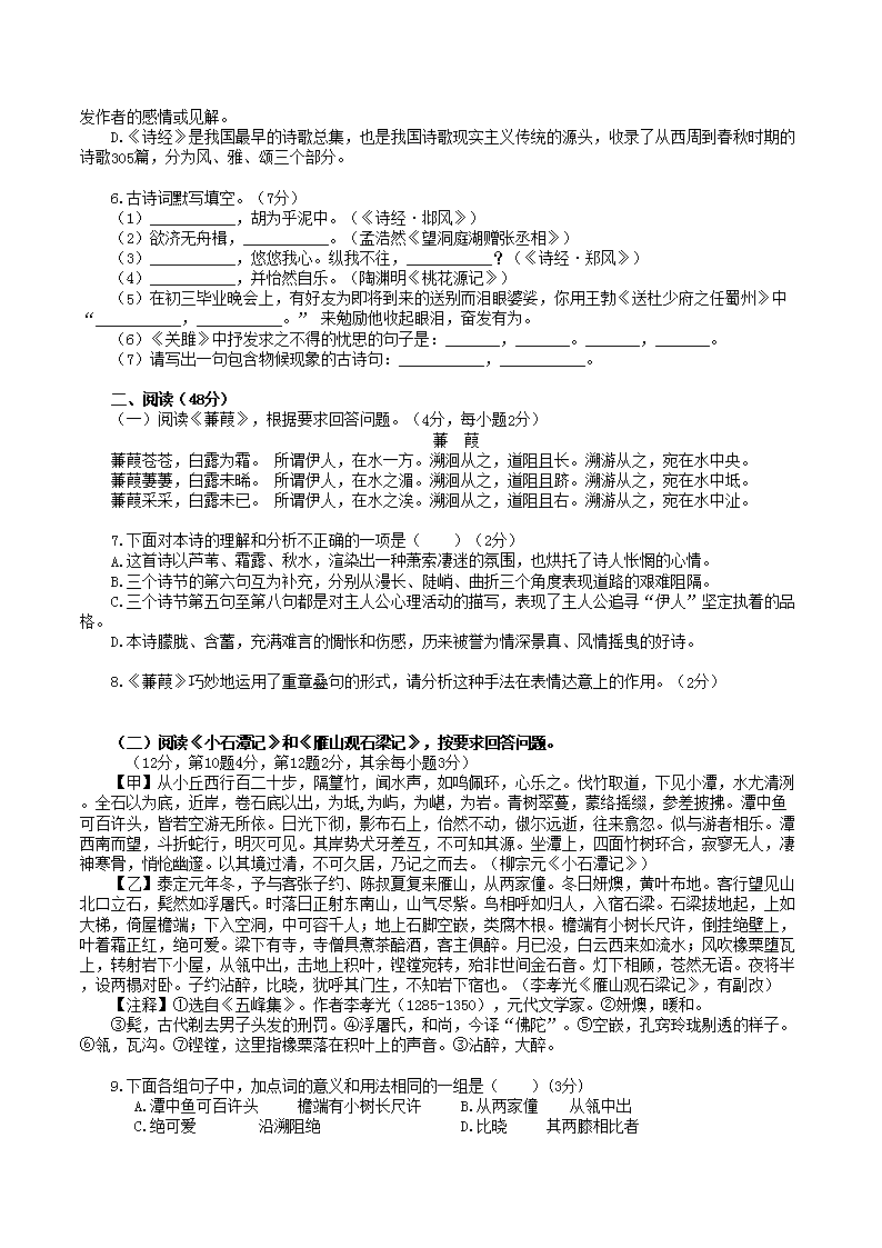 2021-2022学年湖北省十堰市郧阳区八年级下学期期中数学试题及答案(Word版)10-18