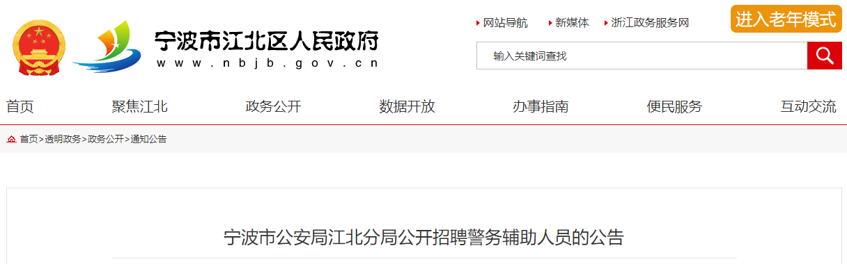 原文标题:宁波市公安局江北分局公开招聘警务辅助人员的公告