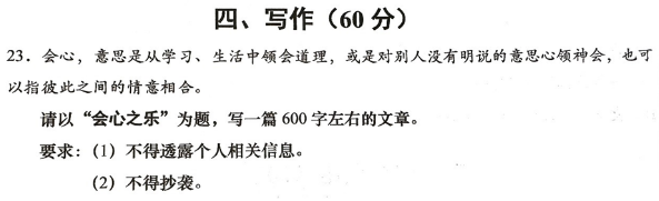 《义务教育语文课程标准》指出:“在语文学习过程中,培养爱国主义、集体主义、社会主义思想道德,逐步形成正确的世界观、人生观、价值观。”今年的中考作文题“会心之乐”,紧扣立德树人根本任务,引导学生积极观察、感知生活,丰富情感体验和精神世界,形成健康的审美情趣,为学生形成健全人格,实现终身发展打下基础。