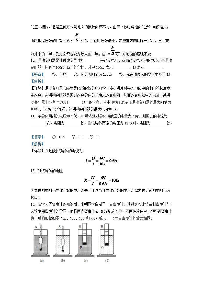 2022-2023学年上海市闵行区九年级上学期物理期中试题及答案(Word版)10-24