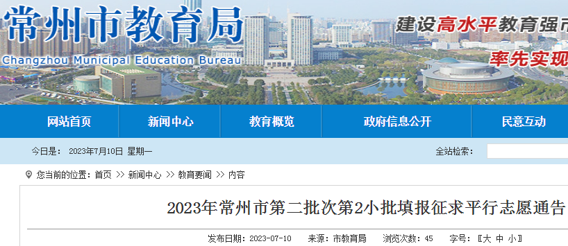 2023年江苏常州市第二批次第2小批填报征求平行志愿通告(填报时间7月10日8:00-20:00)07-11