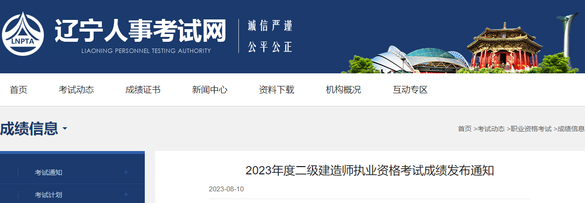 【#二级建造师# 导语】©文档大全网从辽宁人事考试网获悉,2023年辽宁二级建造师考试成绩于2023年8月10日公布,考生通过查分网站进入“成绩查询系统”,输入“个人相关信息”进行查分。小编现将辽宁二级建造师成绩查询相关信息如下: