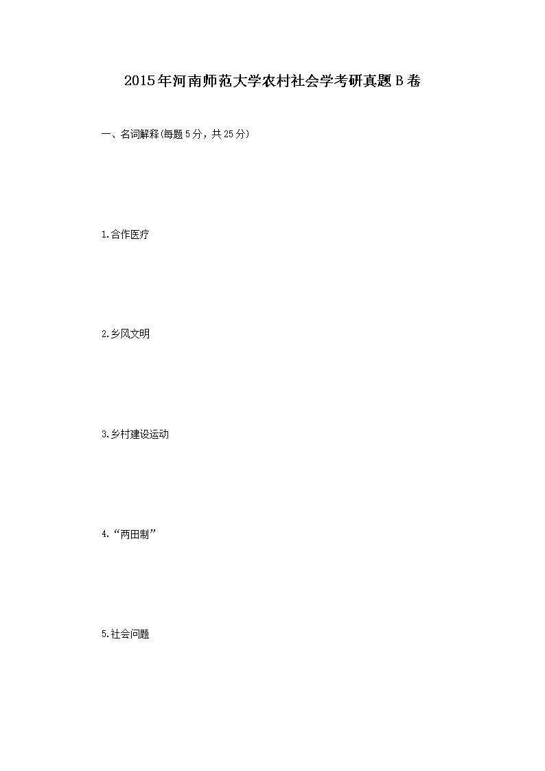 2015年河南师范大学农村社会学考研真题B卷(Word版)05-31
