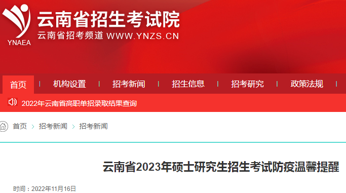 原文标题:云南省2023年硕士研究生招生考试防疫温馨提醒