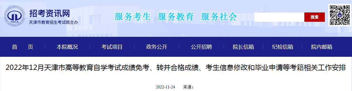 2022年12月天津市自学考试成绩免考、转并合格成绩、考生信息修改和毕业申请等考籍安排11-25