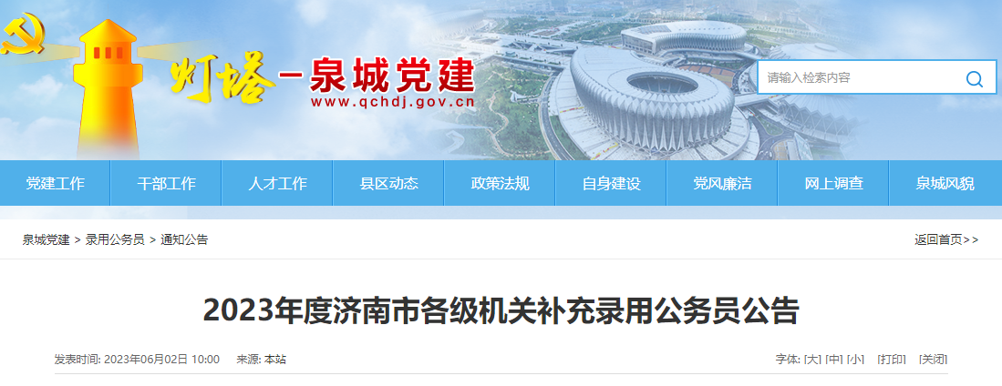 原文标题:2023年度济南市各级机关补充录用公务员公告