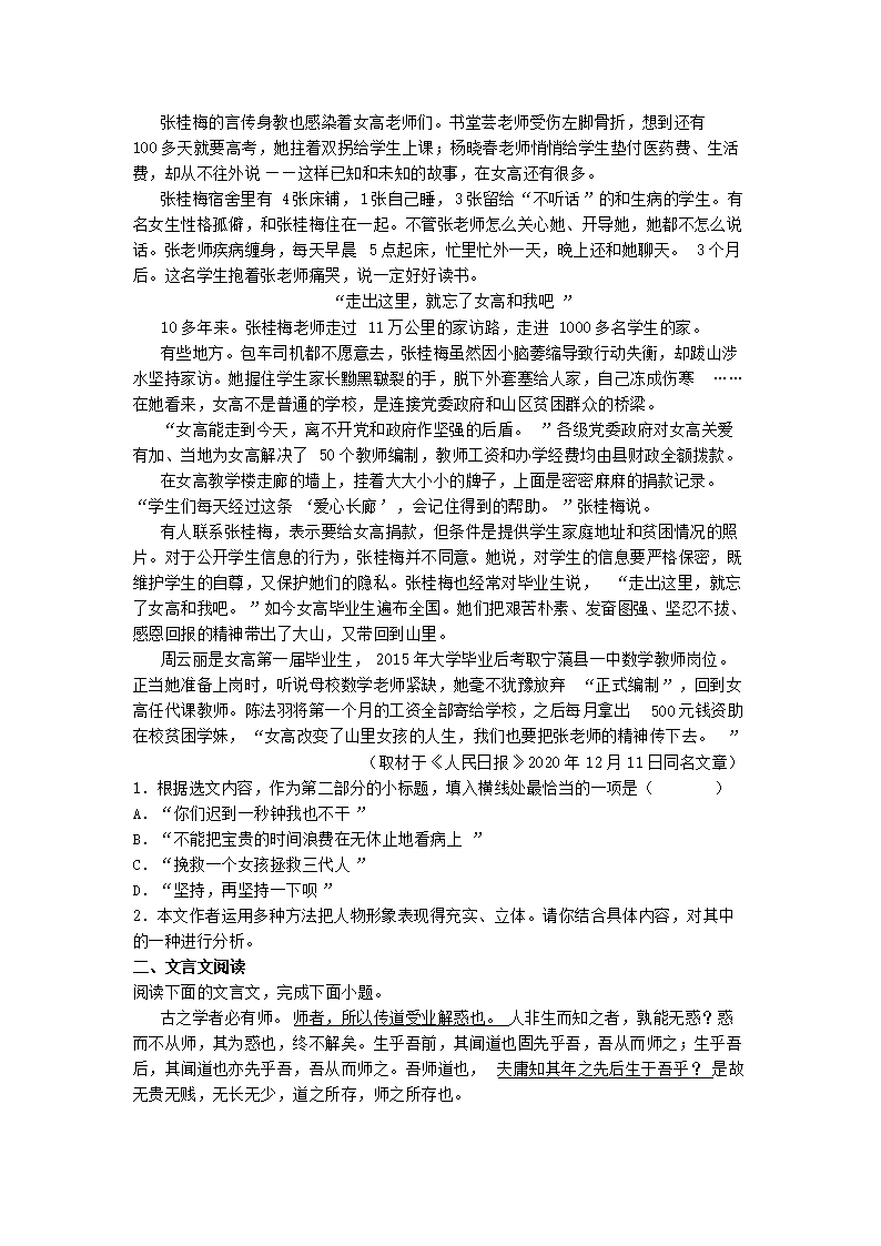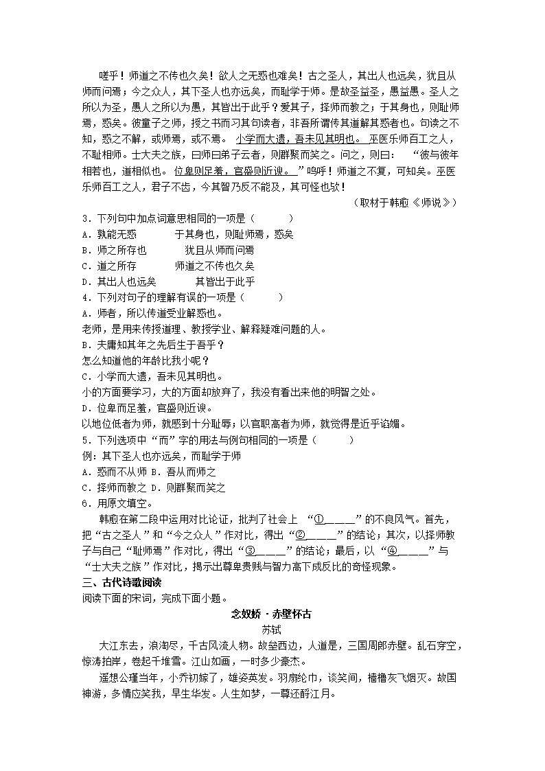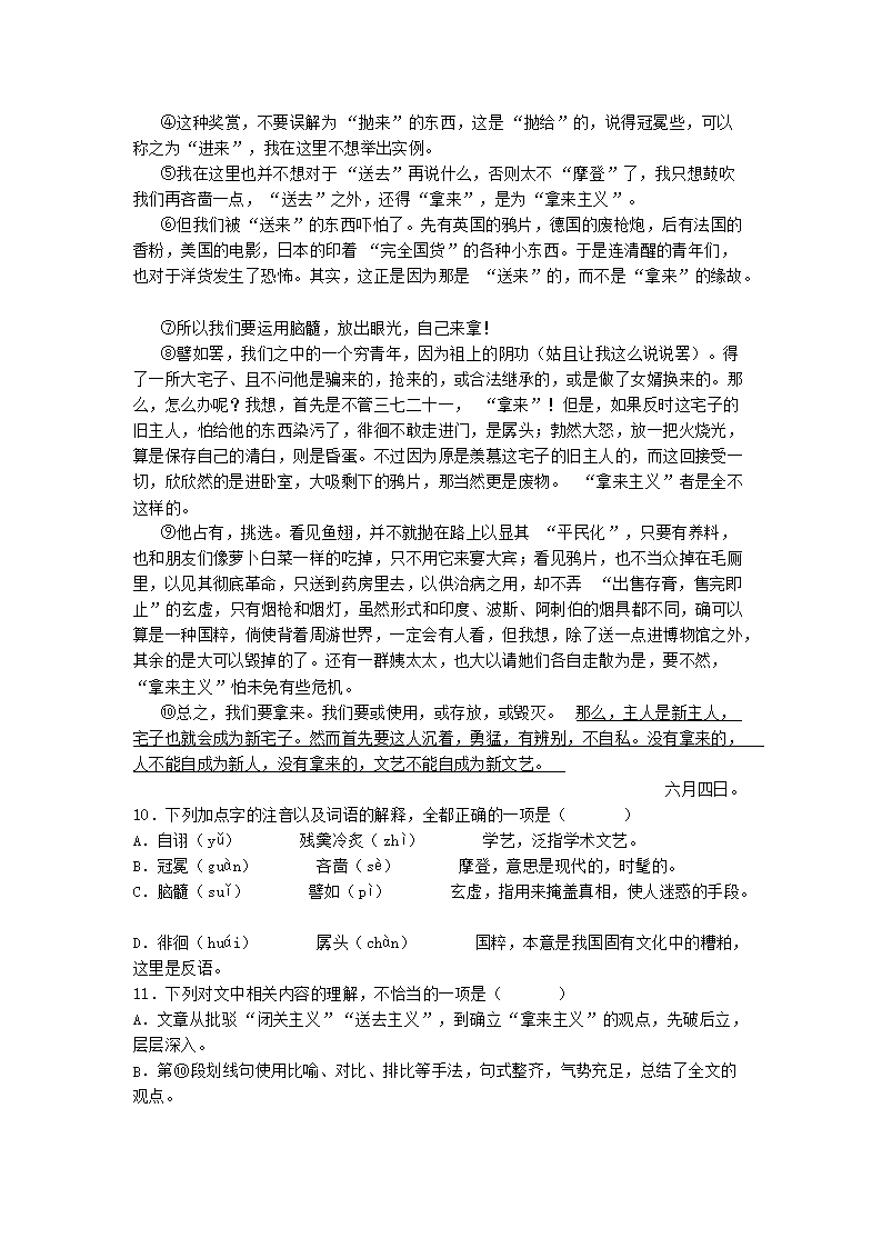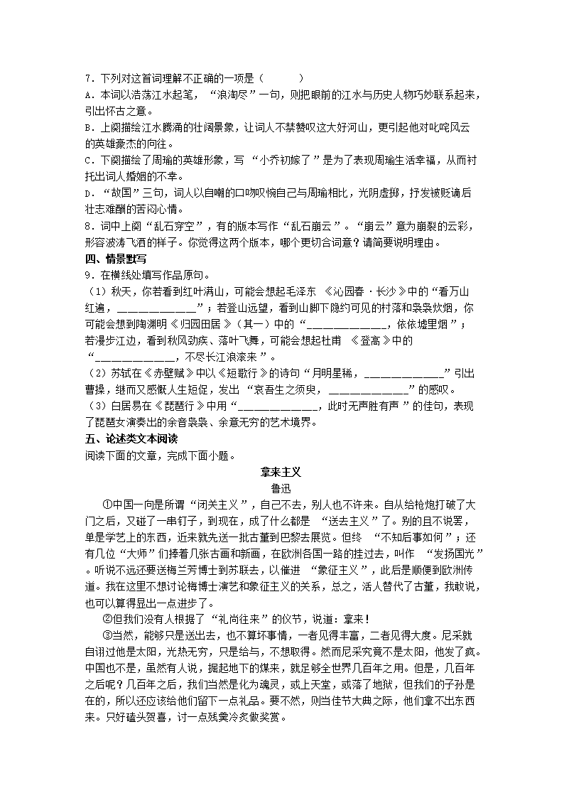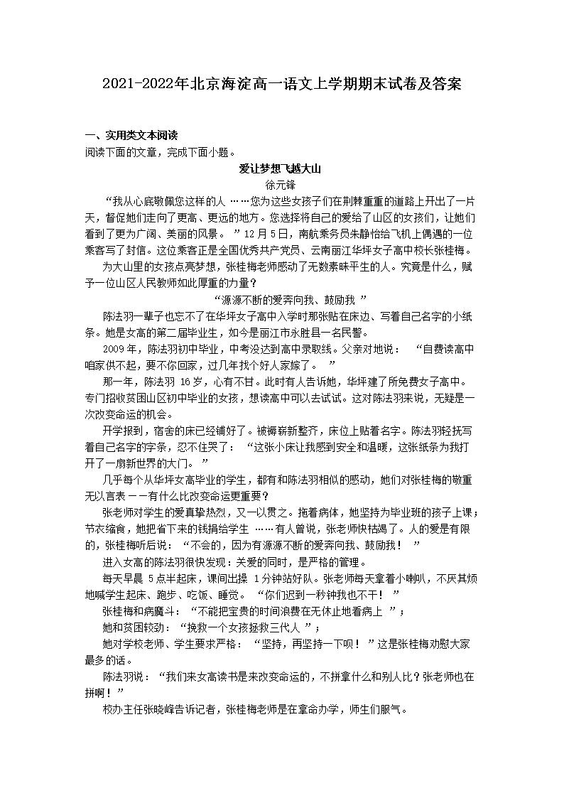 2021-2022年北京海淀高一语文上学期期末试卷及答案(Word版)07-29
