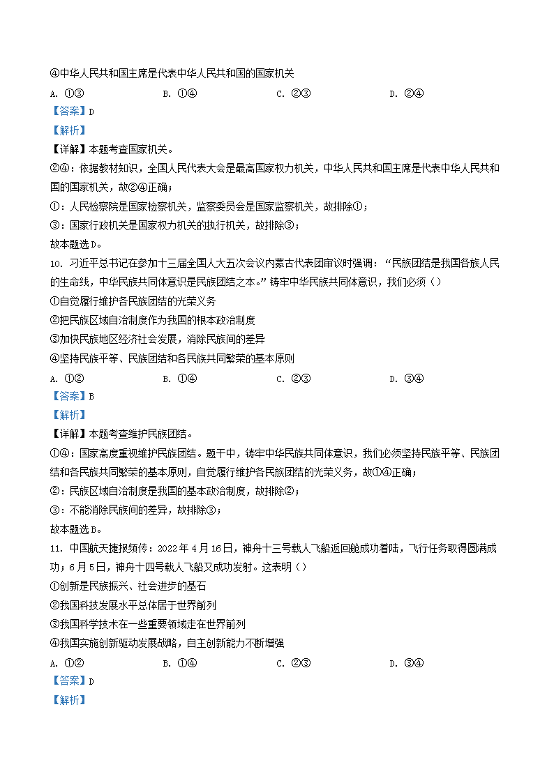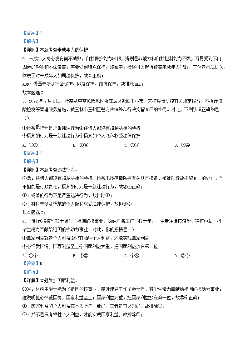 2022年广西梧州市中考道德与法治真题及答案(Word版)05-31