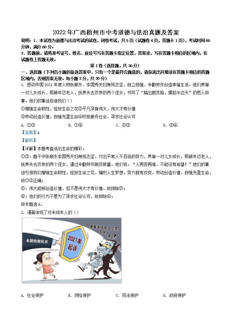 【文档预览】 文档大全网整理发布2022年广西梧州市中考道德与法治真题及答案(Word版),前五页预览如下: