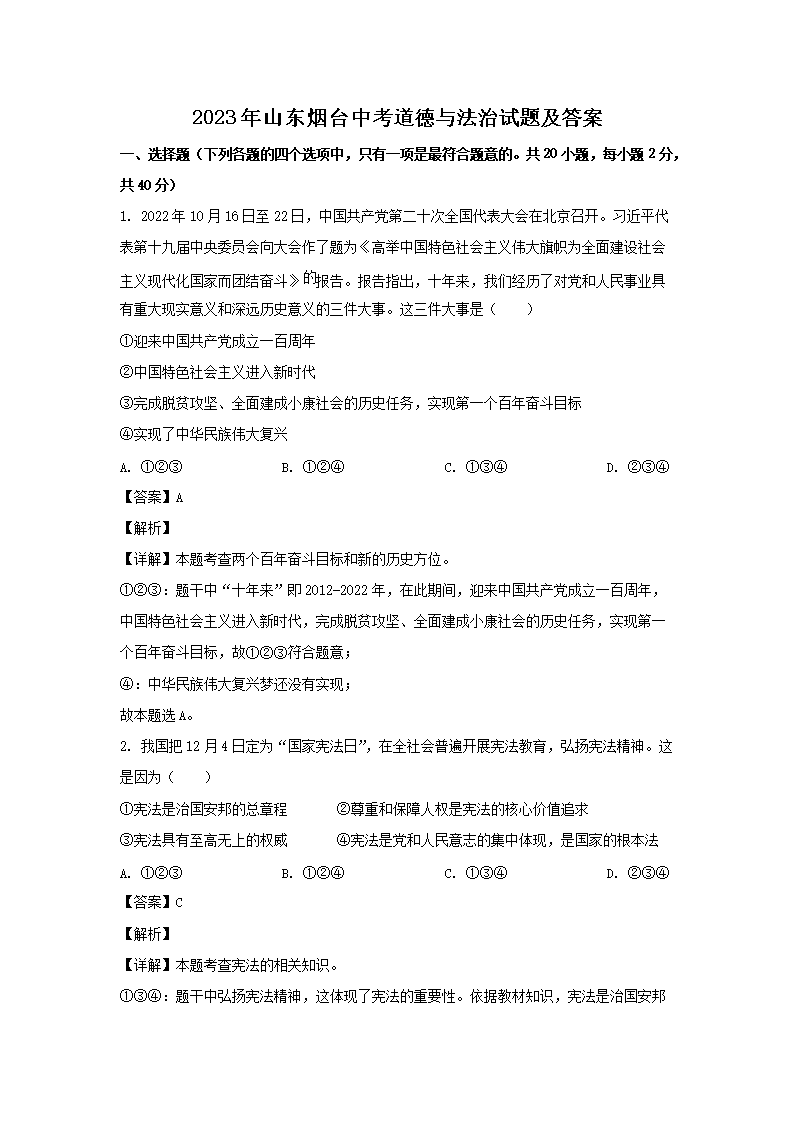 【文档预览】 文档大全网整理发布2023年山东烟台中考道德与法治试题及答案(Word版),前五页预览如下:
