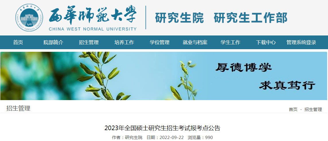 2023年全国硕士研究生招生考试四川西华师范大学报考点公告09-23