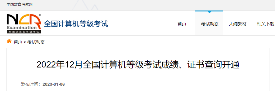 2022年12月全国计算机等级考试成绩查询入口(已开通)
