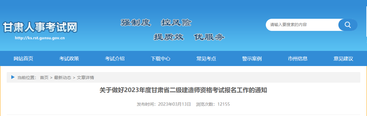 原文标题:关于做好2023年度甘肃省二级建造师资格考试报名工作的通知