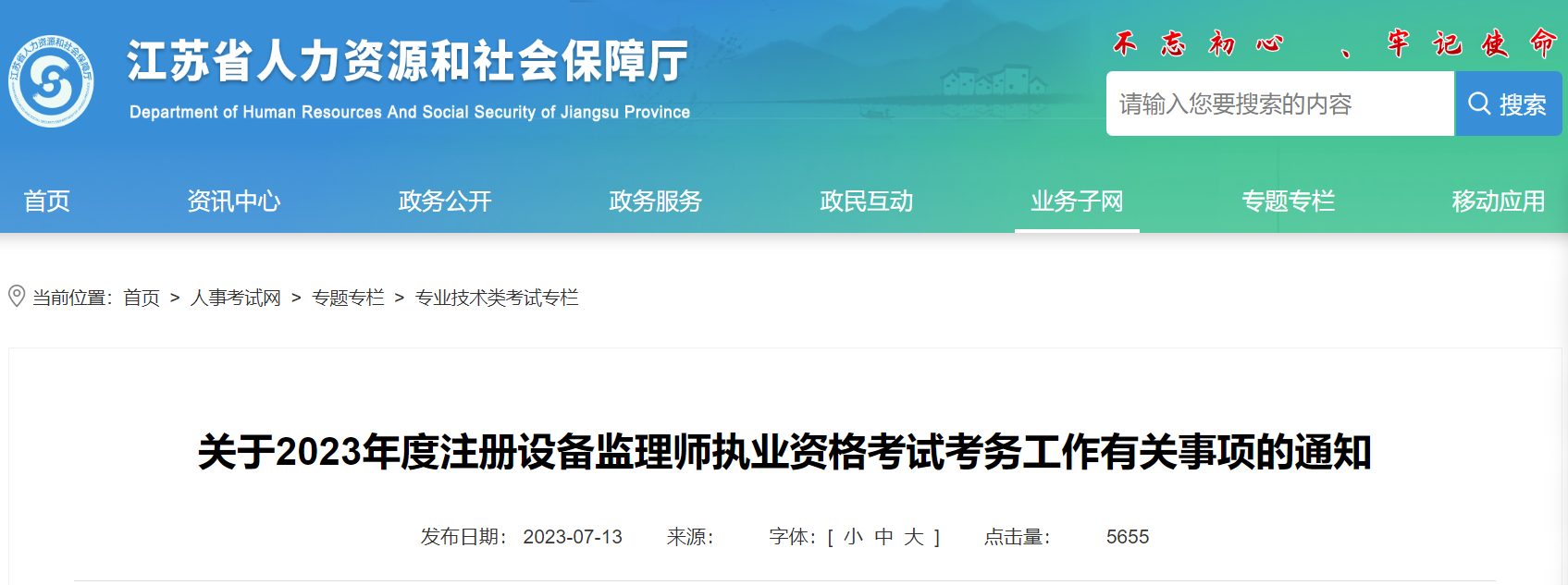 2023年江苏设备监理师考试时间定于9月23日-24日举行!