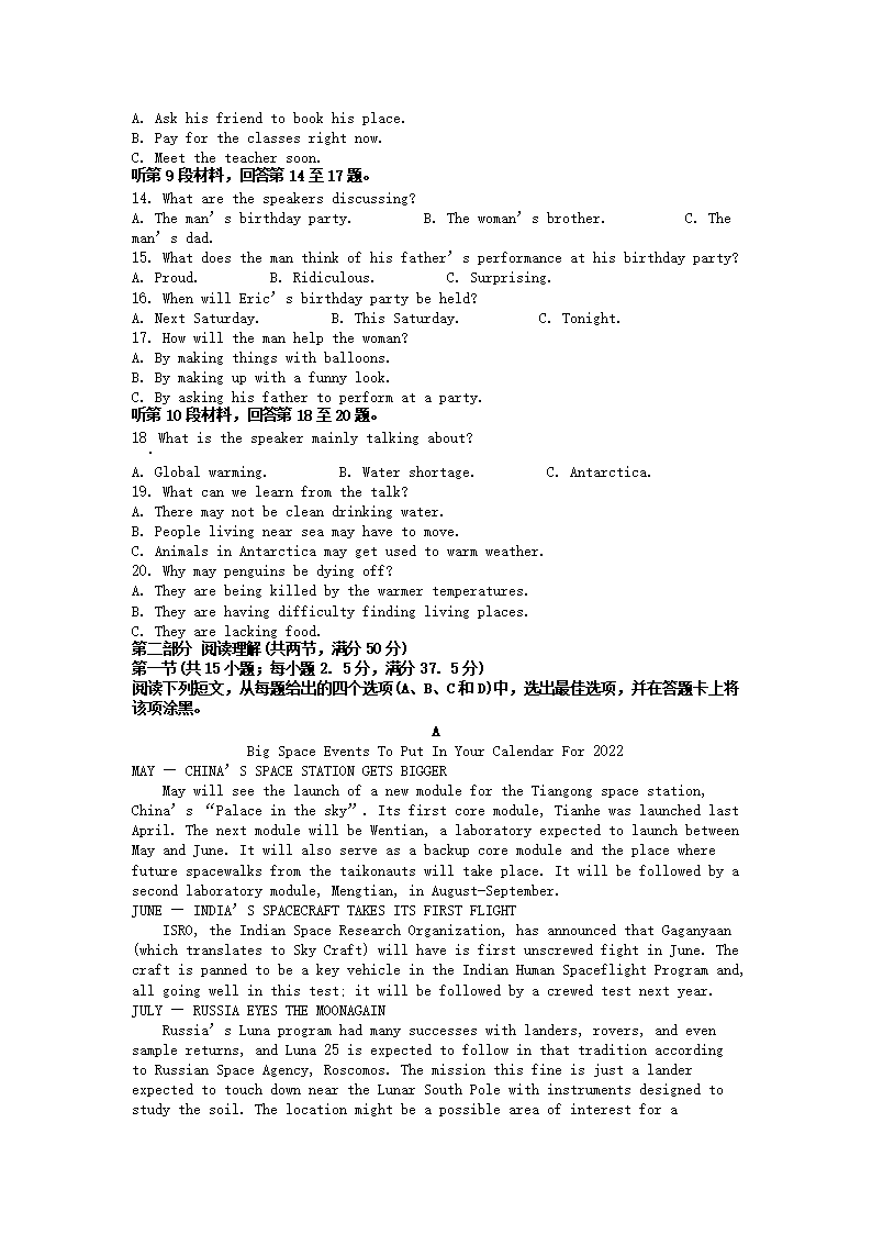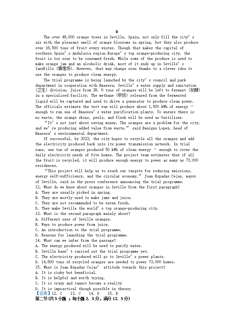 2021-2022年辽宁营口高一英语下学期期末试卷及答案(Word版)09-29