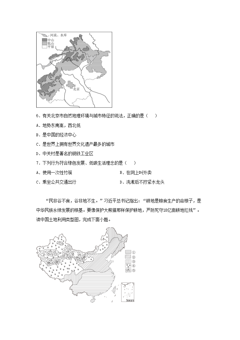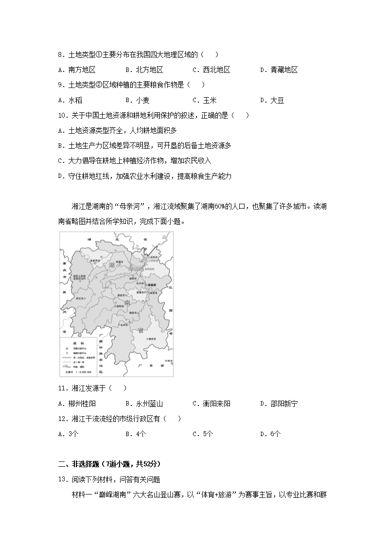 2023年湖南永州中考地理真题及答案(Word版)08-03
