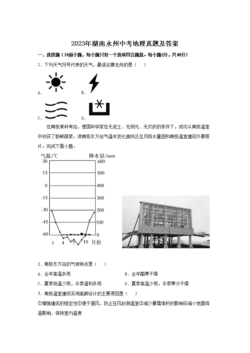 【文档预览】 文档大全网整理发布2023年湖南永州中考地理真题及答案(Word版),前五页预览如下: